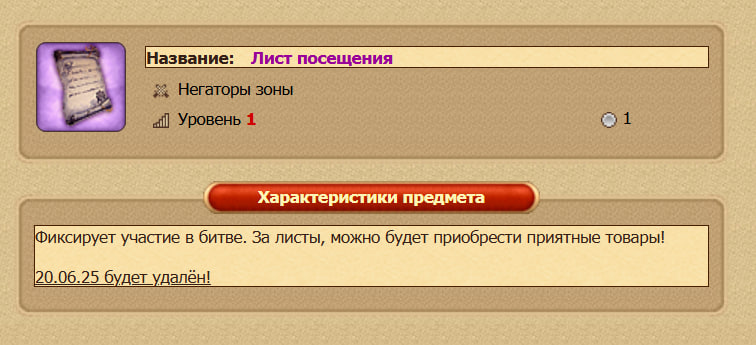С сегодняшнего дня в дроп с битвы добавлены Лист посещения.